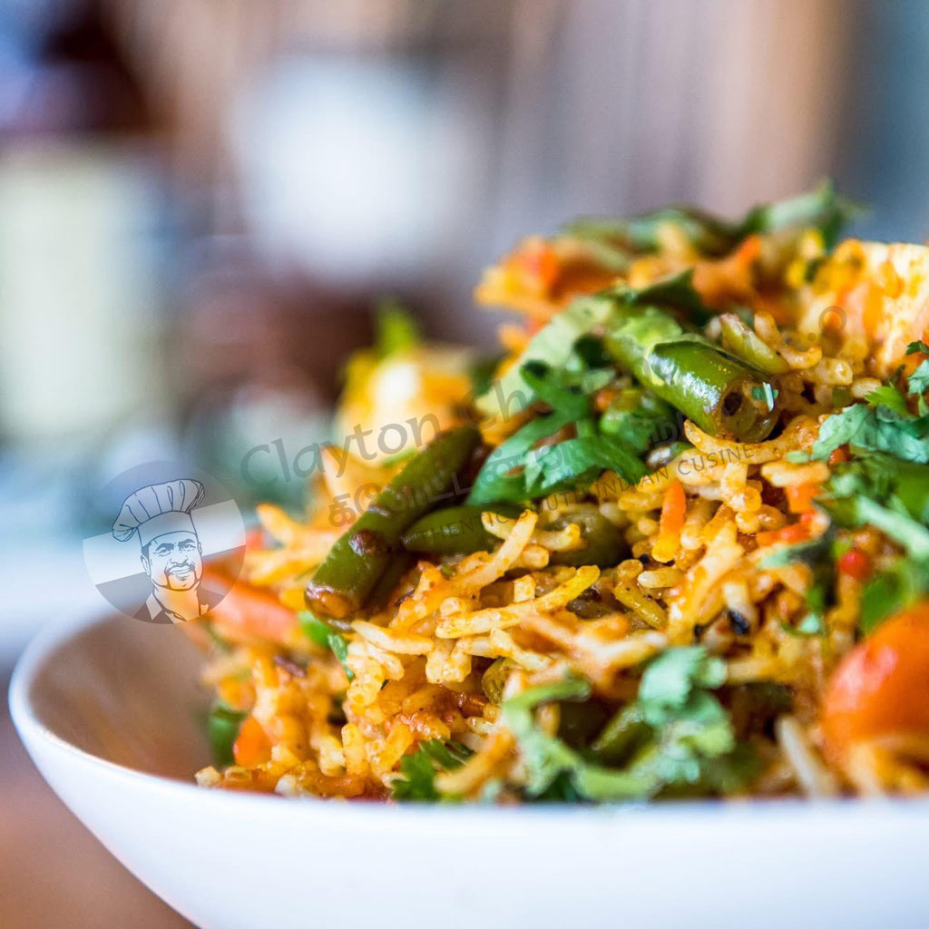 A plain spiced biryani-style rice cooked without any meat. Flavored with aromatic spices like bay leaves, cloves, and cinnamon.